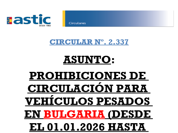 2337 Bulgaria. Prohibiciones circulación 2026